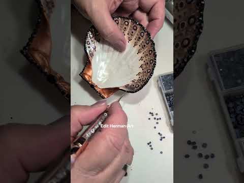 attaching rhinestones to a shell #trinket #crystals #shellart #rhinestones
