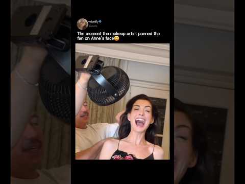 The moment the makeup artist panned the fan on Anne Hathaway's face😆