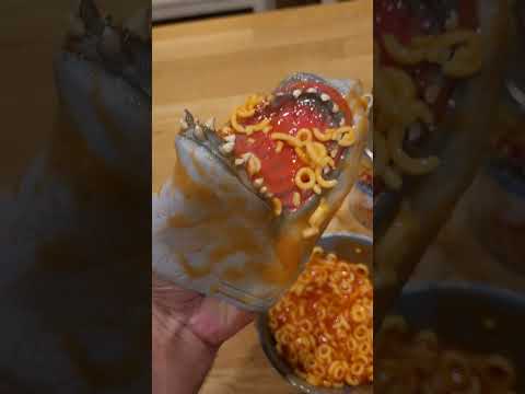 Hungry Hand eats Spaghettios!
