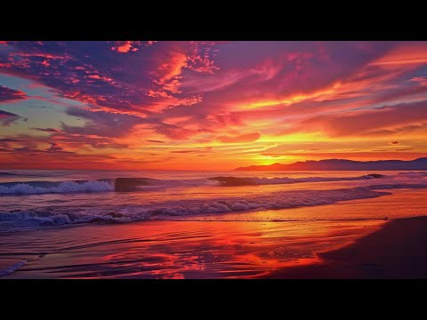 Deep Red Sunset Beach π Calming Ocean Waves & Evening Sky