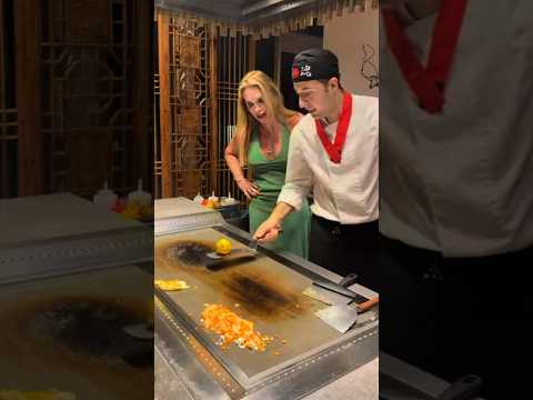 Teaching my guest secret art of jiggling. Teppanyaki show, Hibachi #hibachi #teppanyaki