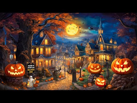 Cozy Autumn Village Halloween Night Ambience 🎃 Best Relaxing Halloween Music 👻Spooky Halloween Music