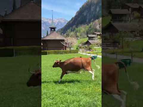 Happy cows jumping in Switzerland