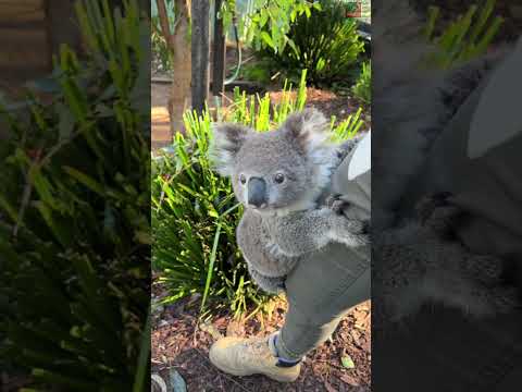 Cheeky koala climbs for cuddles