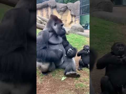 Dad Gorilla Teaches Baby to Roarβ¦ Baby Falls Over ππ¦ #shorts