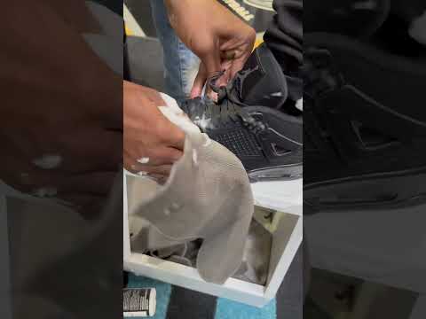 Cleaning these jordan 4 black cats 🐈⬛ #shoedoc #shoelada #shoecleaner #150bucks #jordan4