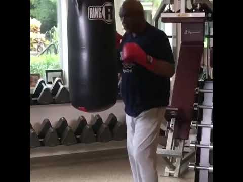 GEORGE FOREMAN ON THE HEAVYBAG 69 YEARS OLD
