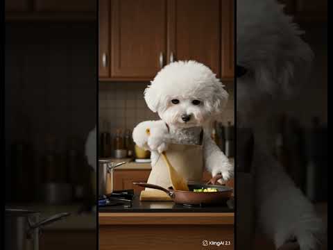 "POV: Your Bichon Frise Starts Cooking Dinner"