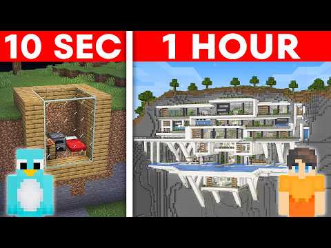 10 Seconds vs 1 Hour: MODERN MOUNTAIN House Build Challenge in Minecraft
