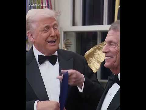 'Oh, he's got good hair.' Trump presents medal to country singer George Strait