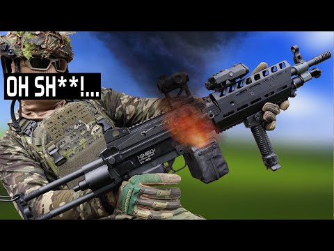 Runaway Machine Gun SELF-DESTRUCTS At Airsoft Game 💥 Novritsch SSR249