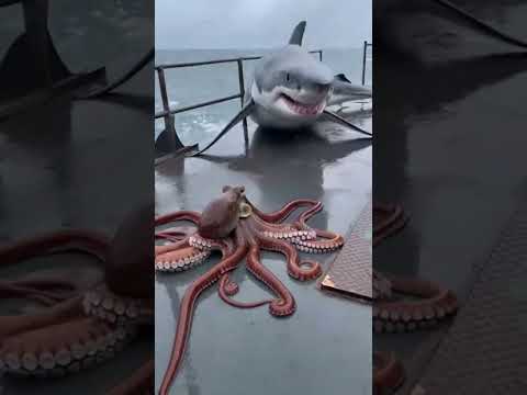 Massive Great White Shark Leaps on Ship and Spits Out Octopus.
