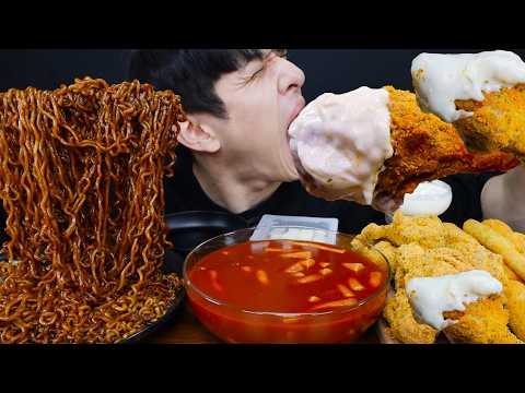MUKBANG BLACK BEAN NOODLES, SPICY RICE CAKE (TTEOKBOKKI) & HONEY CHICKEN 간짜장 & 엽떡 & 허니콤보 역대급 조합 #먹방