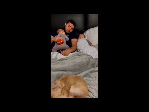 dad is still sleeping, At least we know he's got good reflexes π pop net usa π #popnetusa