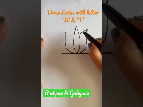 Easy kids Drawing | Draw Lotus using letter ‘U’ & ‘T’ | Easy step by step Guide