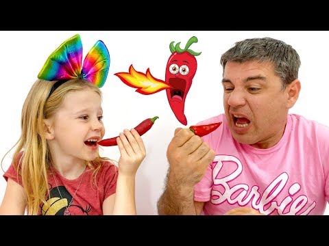 Stacy plays chocolate vegetables with dad in challenge