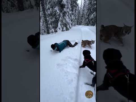 Lynx Playfully Pounces On Person In Snow