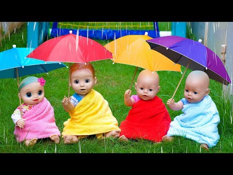 Rain Rain Go Away Song with Linda and Little Baby Dolls