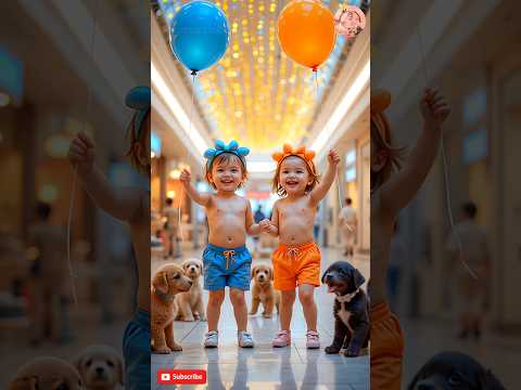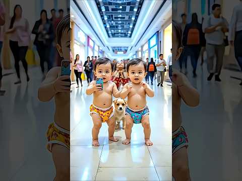 Twin Babies Dancing in Mall with Puppy 😍 Cute Baby Dance with Moms | Viral Baby Video 2025