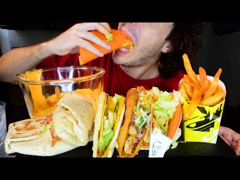 Taco Bell Asmr Mukbang @tacobell grilled cheese burrito, nacho fries, dorito locos, ci...
