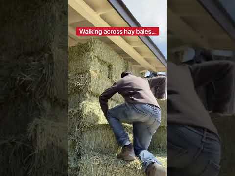Walking across hay bales be like… #horsesandhumor