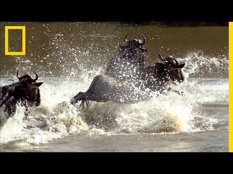 Malgré les attaques de crocodiles, ces gnous tentent de traverser le fleuve Mara