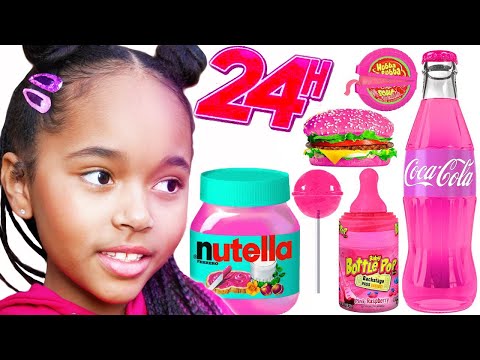 Je mange QUE de la nourriture ROSE pendant 24 HEURES - NOUVEAU challenge 24h pour Verity