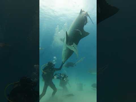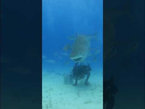 Tiger Shark turn and hug with diver #shark #sharks #nature #wild #adventure #ocean Tiger Beach