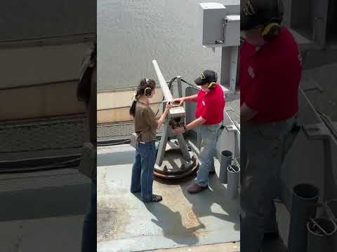 Firing a 40mm gun aboard Battleship NEW JERSEY