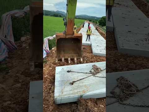 Road Construction Using Precast Cement Blocks with Excavator #construction #shorts #road