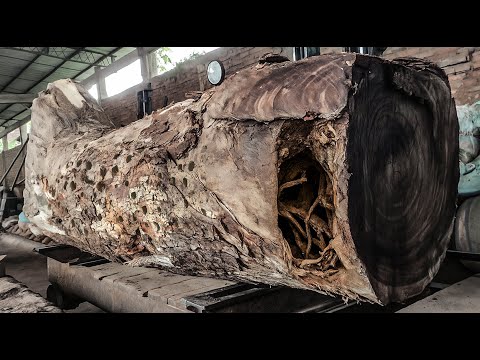 Massive Tree Root Gets Sawn in Half – Incredible Lumber Mill Action!